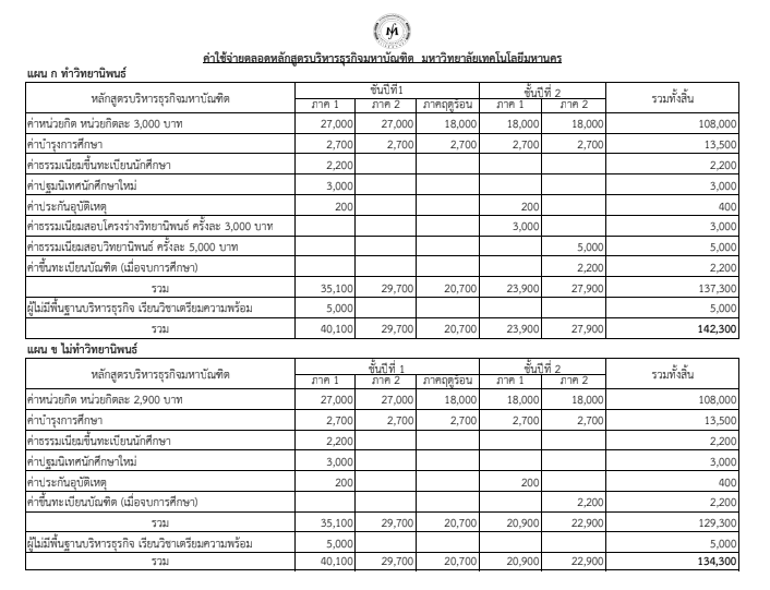 ค่าใช้จ่ายตลอดหลักสูตร